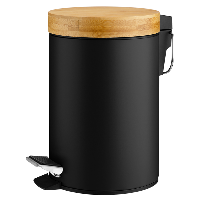 Kosz łazienkowy Black&White został wykonany z wysokiej jakości metalu malowanego proszkowo. Pokrywa kosza wykonana została z drewna bambusowego, który ociepla wnętrze. Wewnętrzny kubeł z uchwytem ułatwia codzienne użytkowanie kosza. Nie musisz zabierać całego kosza w celu opróżnienia go, wystarczy, że wyjmiesz sam pojemnik. Podstawa wykonana z tworzywa sztucznego zapobiegnie rysowaniu podłogi w łazience. Czarny kolor obudowy jest niezwykle nowoczesny i elegancki.