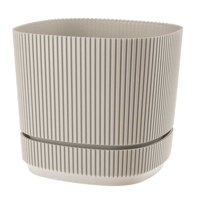The flowerpot has a saucer.