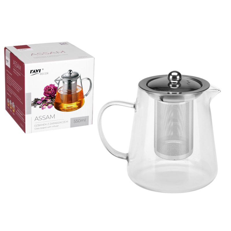 The Assam teapot with infuser is the perfect solution for tea lovers who value convenience and excellent taste. Crafted from high-quality glass, it boasts an elegant and modern design that will surely enhance any kitchen. The infuser, located inside the teapot, allows for perfect brewing of Assam tea, allowing it to fully unfold its flavor and aroma. This ensures that the tea leaves are evenly immersed in the water, ensuring the perfect extraction of flavors. The Assam teapot with infuser features a comfortable handle that ensures a secure grip when pouring. The tight-fitting lid protects the beverage from cooling and contamination, and also preserves the tea's aroma. This product is not only practical but also an elegant addition to any table. The Assam teapot is the perfect choice for anyone who values high-quality products and wants to enjoy the unique flavor of their favorite tea.