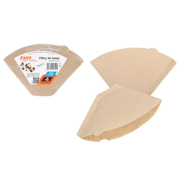 Coffee filters made without the use of adhesives and chemically unbleached filter paper are designed for brewing coffee in drip coffee machines. Thanks to the use of filters, the brewed coffee is free of coffee grounds while preserving its flavor and aroma. The coffee also contains fewer irritants than traditionally brewed coffee.