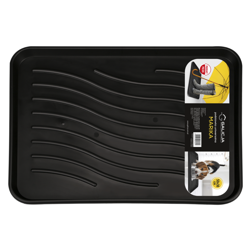 Maintaining a tidy home during rainy autumn days or winter snowstorms is no easy feat. However, with our MARIKA universal coaster, you'll keep your home spotless. This coaster is made of high-quality plastic . It's designed to hold shoes during rainy and snowy weather, but it also makes a great base for pet bowls. MARIKA has 2.5cm-high walls that keep water and dirt contained within the coaster, and to clean it, simply rinse it with water and wipe it with a cloth. The black color will universally complement any home decor.