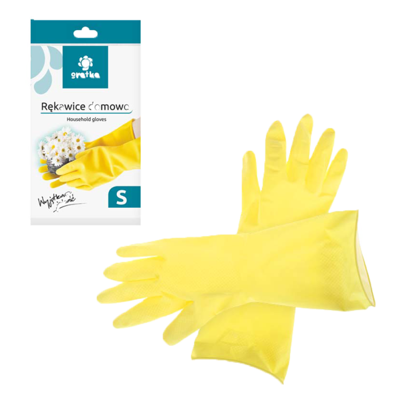 Made of natural latex, these household gloves provide excellent protection against detergents, prolonged exposure to water, and accidental cuts. They feature a flocked interior for easy donning and doffing.