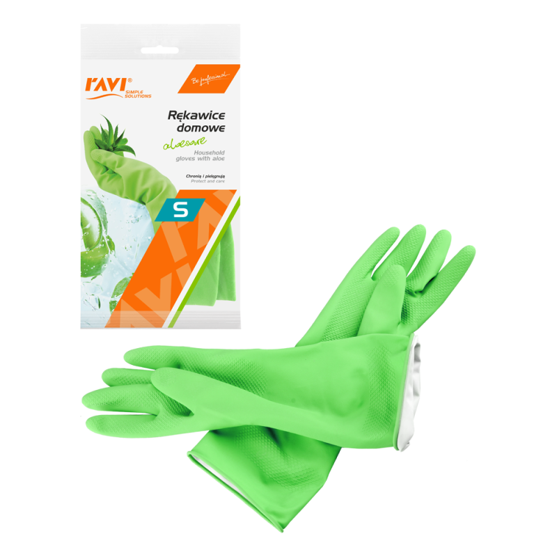 Made of natural latex, these gloves provide excellent hand protection against various types of contamination, especially the effects of chemical cleaning agents. Their unique advantage is the inner layer, enriched with aloe extract, which also provides skincare benefits. The delicate aloe fragrance prevents the gloves from emitting the characteristic rubber odor.